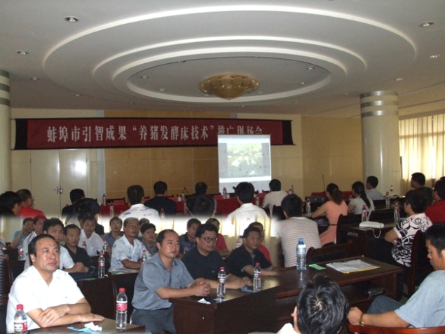 8月14日,蚌埠市引智成果“养猪发酵床技术”现场推广会在龙亢农场召开,蚌埠市副市长刘振元、蚌埠市人事局、科技局、财政局、农委、怀远县人大、政协负责同志,以及蚌埠市所辖四区三县的人事局、科技局、财政局、农委负责人和5000头以上的生猪养殖大户参加推广会,龙亢农场场长、党委书记杨俊宇给予热情接待并参加了推广会。