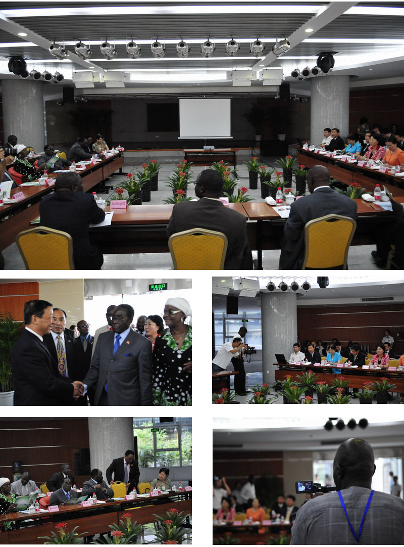 近日,津巴布韦总统穆加贝一行在副省长花建慧的陪同下访问安徽省相关企业。8月12日下午,省委书记张宝顺会见并宴请穆加贝总统一行。省农垦集团公司董事长田文俊、总经理李卓民、副总经理王占廷以及省直和合肥市有关部门和单位的领导参加了与穆加贝总统一行的会谈及宴请活动。田文俊董事长代表安徽农垦集团向穆加贝总统一行汇报了安徽农垦概况及发展现代农业的做法,并就双方关注的问题进行了交流。穆加贝总统一行观看了《奋进中的安徽农垦》电视宣传片及有关材料,对安徽农垦发展现代农业有了基本的了解。