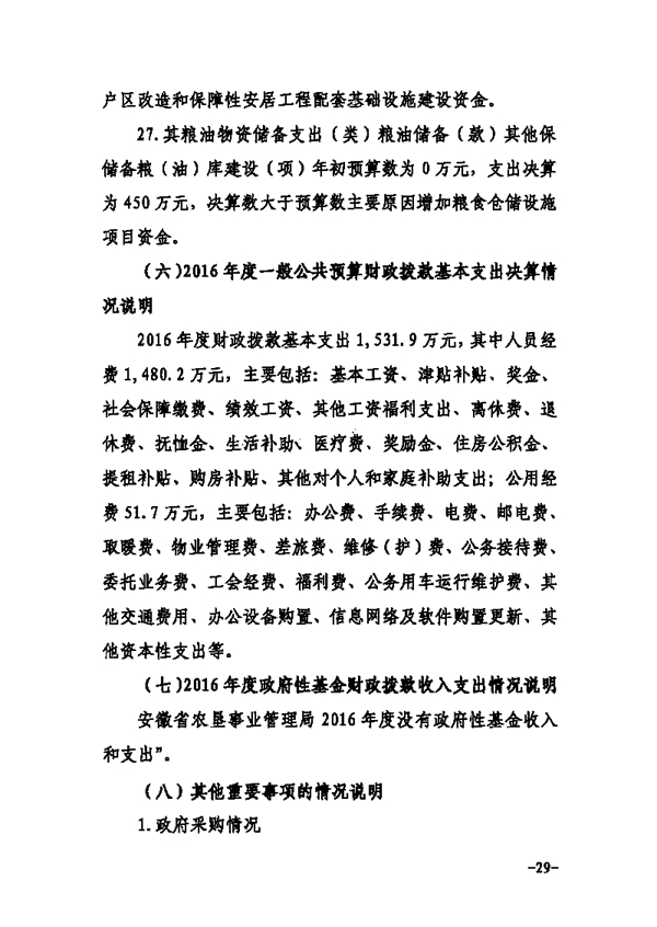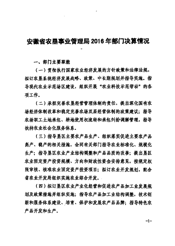 安徽省农垦事业管理局2016年部门决算情况