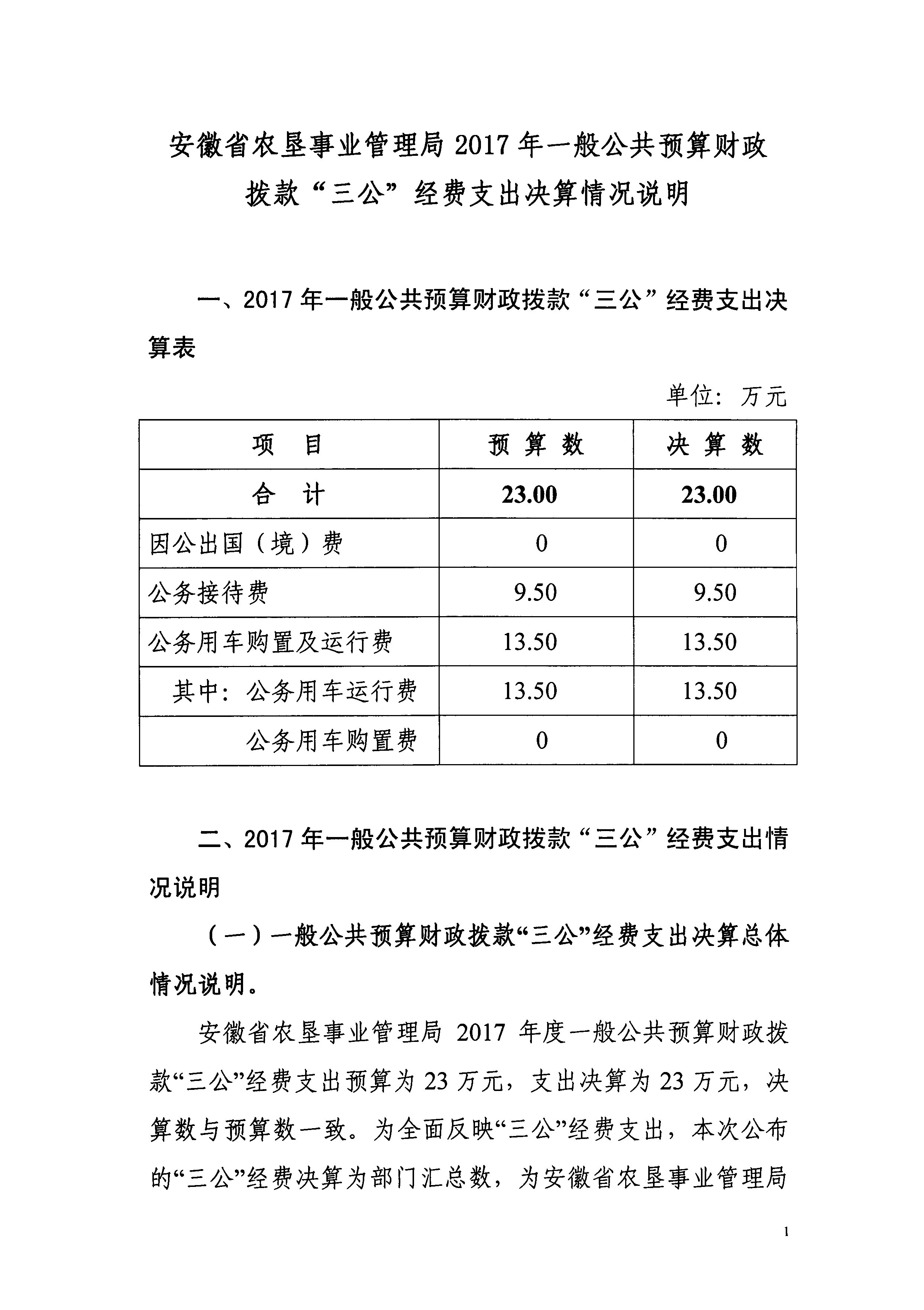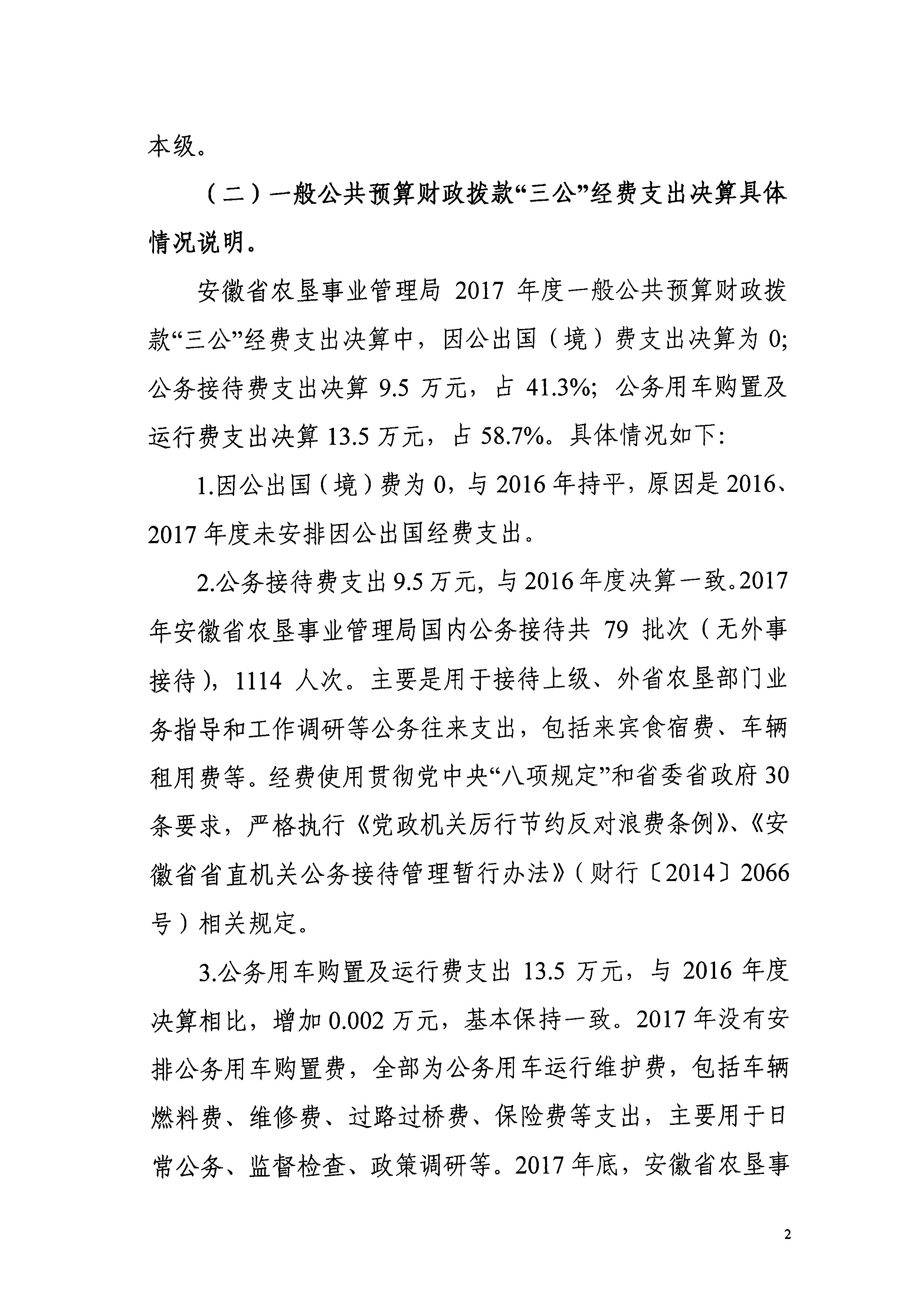 安徽省农垦事业管理局2017年“三公”经费决算