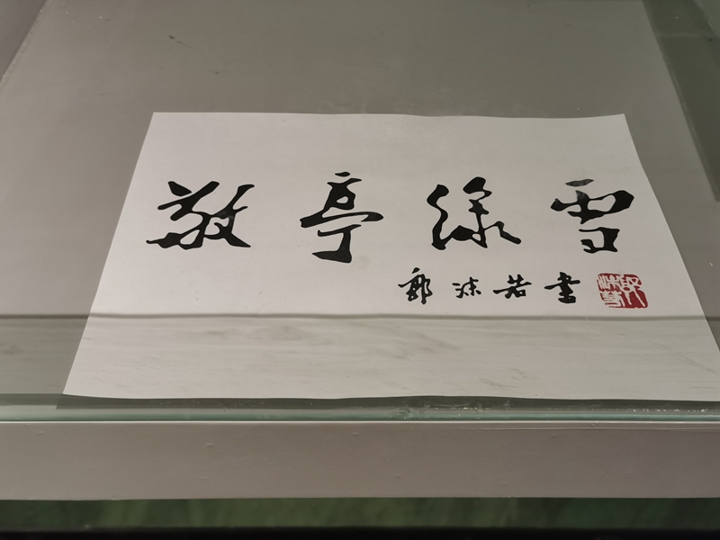 9月24日,初秋的北京丹桂吐蕊,海棠迎风,位于后海的郭沫若纪念馆内,留有一代文豪手迹的书画散发着阵阵墨香,历史学家的人生足迹在讲解员的生动阐述中渐次展开……一场特别的书法题字受赠仪式在这里举行。郭老的二女儿郭庶英女士将自己为敬亭绿雪茶叶题写的“黄金芽”安徽农垦集团,授赠予安徽农垦。而43年前,郭沫若先生也为当时刚刚恢复研制的敬亭绿雪茶叶题名。