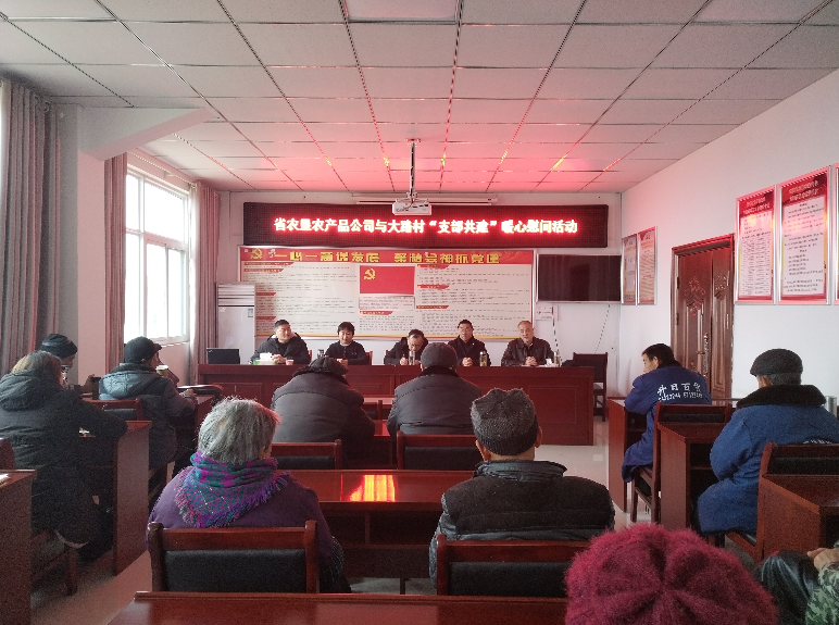 “今年我们大路村集体纯收入突破50万元,经村委会研究,给予困难党员、退伍军人和困难群众发放慰问金”大路村党支部书记在1月26日农产品公司总部党支部与大路村党支部共建总结会上自豪地说。