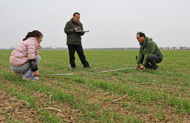 农业技术人员通过实地查看土壤墒情和麦苗长势,对基本苗、叶片数、分蘖数、主茎叶龄和根系生长状况等情况进行系统调查,划分出一、二、三类麦田,因地因苗制宜、控促结合,分类指导做好小麦冬季田管,结合天气条件适时开展病虫草害综合防治,为夏粮增产丰收打好基础。(撰稿李龙 审稿徐和兴)