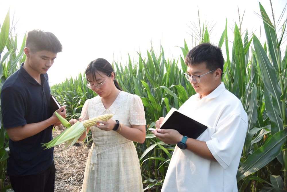 8月22日,在夹沟农场生产管理部的玉米地里,放眼望去,在地玉米长势喜人,丰收在望。田垄里,该场农业科技部胡梦娇等三名农技人员正在采集玉米实时生长数据,通过数据分析采取针对性田管措施。