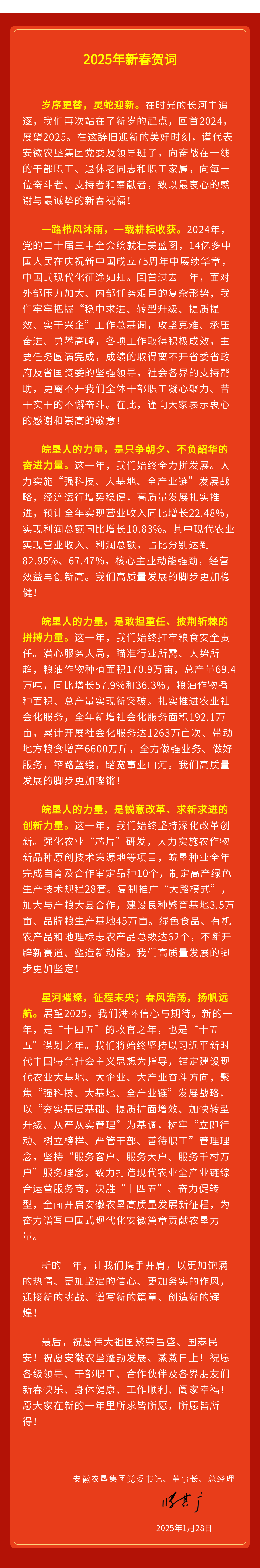 安徽农垦2025年新春贺词