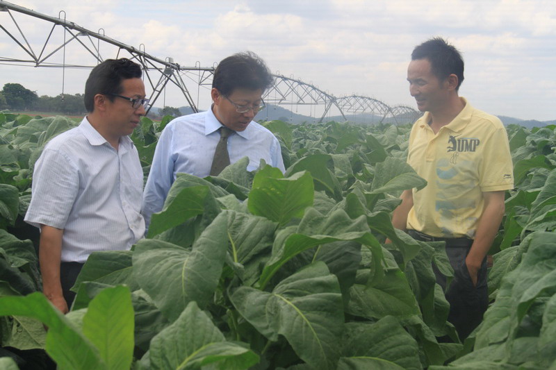 1123,中国驻津巴布韦大使馆经贸参赞韩兵到访安徽农垦皖津公司考察指导工作,实地察看了烟叶种植加工、琪强砖厂生产经营等情况。皖津公司副董事长、津国防部伊何阮姆巴将军、总经理何宏顺参加考察。