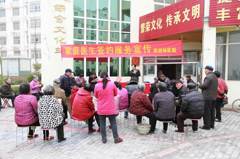 根据央地各级卫计委工作部署,从今年11月开始,砀山果园场医院开展签约服务,让职工择定自己的家庭医生。场党委1117召开专门会议进行安排部署,场医院次日开展专题宣传活动,启动了同职工居民的家庭医生签约服务。