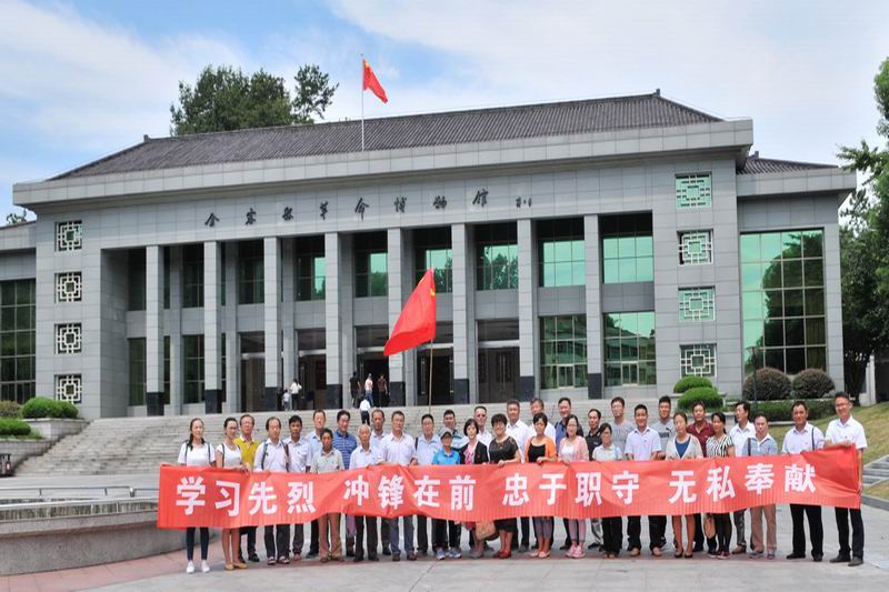党员们怀着崇敬心情,参观了金寨县革命历史博物馆、红军广场,瞻仰了红军纪念堂和将军墓园,认真观看每一张照片、每一件文物……。随着讲解员的生动讲述,大家仿佛回到了那交织着血与火、燃烧着理想信念的革命战争岁月,深切感受到今天幸福生活的来之不易,应倍加珍惜革命先烈用牺牲和荣光换来的这一切,同时,更加坚信“没有共产党,就没有新中国”的历史必然选择,更加坚定了“高擎党旗,永跟党走”的信心和决心。在革命烈士纪念塔前,佩带着党徽的农场36名党员,在鲜红的党旗下,重温了入党誓词,铿锵有力的誓言在苍翠的山谷间久久回荡。