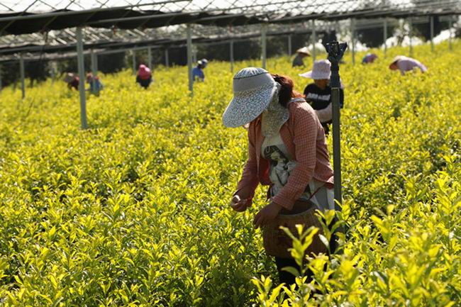 920,皖垦茶业集团祠山岗茶场黄金芽茶秋采开园。笔者当天在大棚茶园看到,采工们双手不闲,在茶树上如彩蝶穿花般上下翻飞,煞是好看。这是去春开园以来首次秋季试采,鲜叶产量品质均有很大提升。