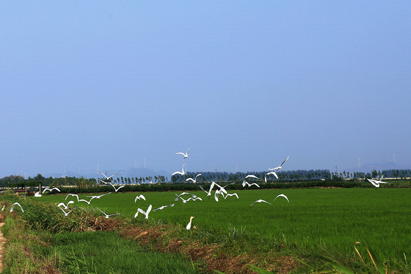 华阳河农场:碧绿稻海飞白鹭
