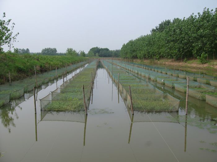 漕河上的网箱养鳝基地