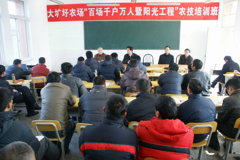 12月5日,大圹圩农场举办“百场千户万人暨阳光工程”农技培训班,邀请省农科院水稻研究所专家到场讲授水稻高产栽培有关农技知识。全场农业管理人员、农业技术人员、种田大户及农业合作社社员百余人到场听课。场领导施广庆主持培训会并讲了话。